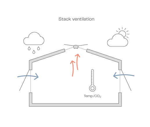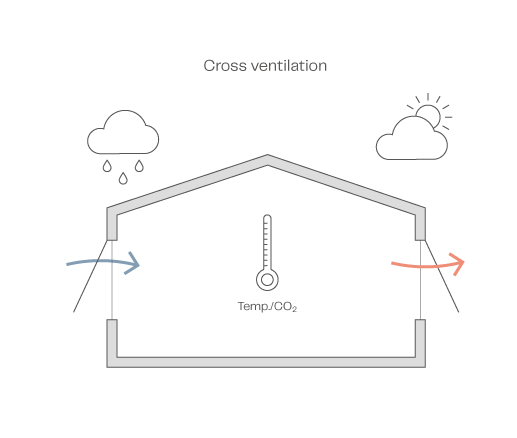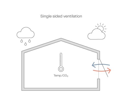 Designs based on single sided ventilation will provide a significantly lower performance than cross or stack ventilation. It is therefore important to align your expectations with the ventilation principle used.