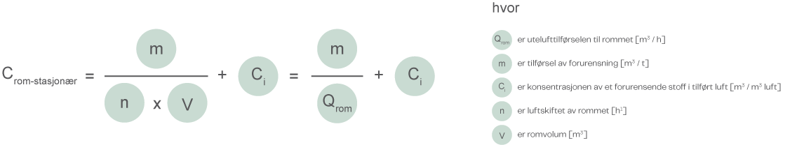 Deretter kan du ved hjelp av fortynningsligningen beregne hvor mange minutter pr. time og dag vinduene eller andre former for åpninger skal være åpne på kalde dager for å være under ønsket CO2-nivå.