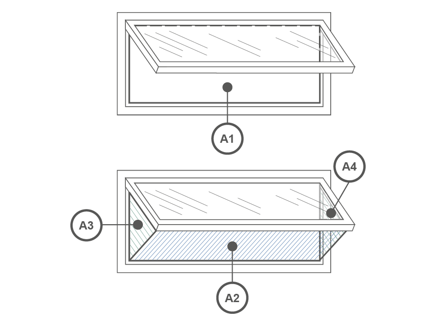 It needs to be considered whether building elements, solar shading or similar block the airflow, and therefore reduce the geometrical opening area.